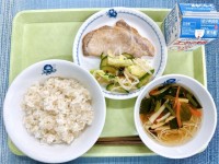 ~もぐもぐ通信~○玄米入りご飯○豚肉の生姜焼き○野菜の梅風味和え○そうめん汁○牛...