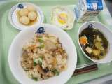 〜今日の給食〜 ○里芋入りきのこご飯 ○すごもり卵 ○すまし汁 ○お月見だんご ...