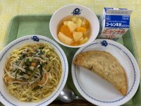 【今日の献立】・牛乳・焼きそば・じゃがもち・中華コーンスープ