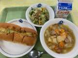 【今日の献立】 ・牛乳 ・チリビーンズライス ・野菜サラダ ・ポンデケージョ