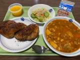 【今日の献立】 ・牛乳 ・カレーライス ・パリパリサラダ ・果物(いちご)