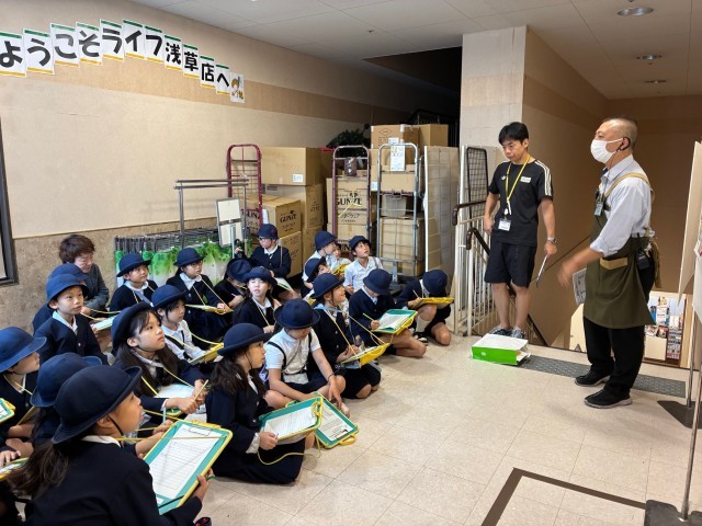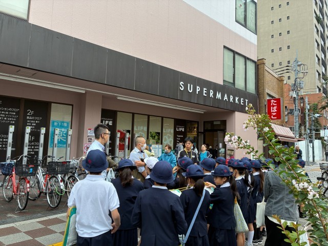 社会科の学習で、3年生がお店見学を実施しました。今回のテーマは「たくさんのお客さんに来てもらうための工夫」です。