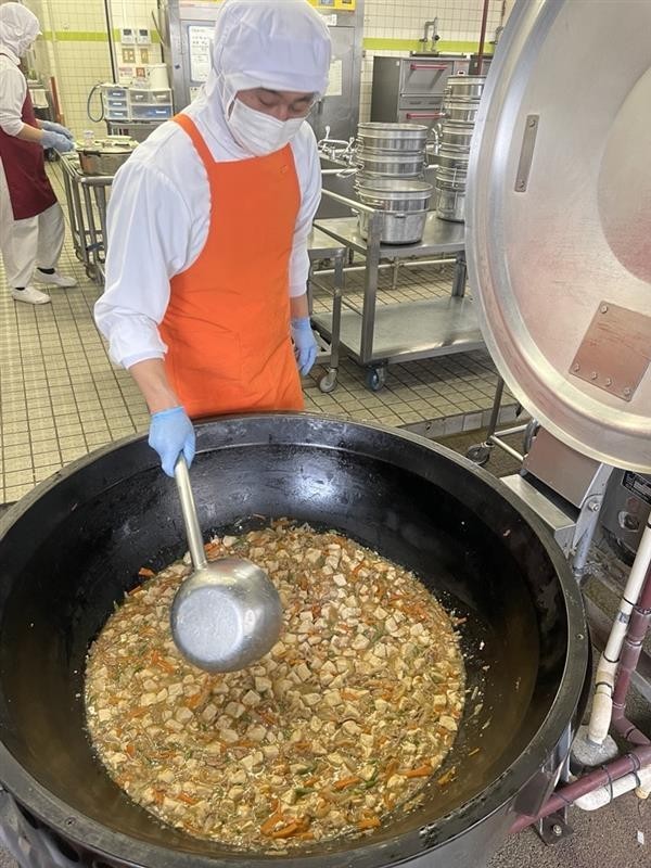 今日は、今が旬で美味しく食べられる“れんこん”をサラダに入れて出しています。“れんこん”は、沼の底の深いどろの中で育ちます。れんこんの穴は、空気を送るパイプの役割をしています。水の上の葉や茎とつながっていて、泥の中のれんこんへ空気を送っています。泥の中では呼吸ができないので、葉や茎から空気をもらっているのです。よくかんで、シャキシャキした食感を味わって食べましょう。