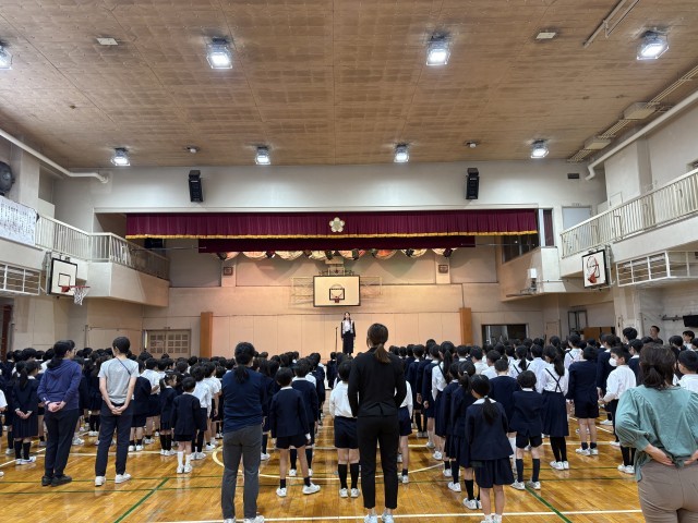 中学校の先生から、声をかけなくても全校児童が揃って礼ができることがすごいと褒められた、との事でした。