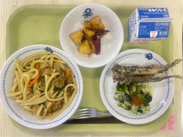 大学芋の名前の由来はいくつかあります。“昔、東京の学生街で売り出し、大学生が好んでよく食べていたから”、“大学生が学費を稼ぐために作って売っていたから”などです。田原小でも人気メニューのひとつで、さつまいもがおいしい秋になると毎年作っています。よくかんで、味わって食べましょう。