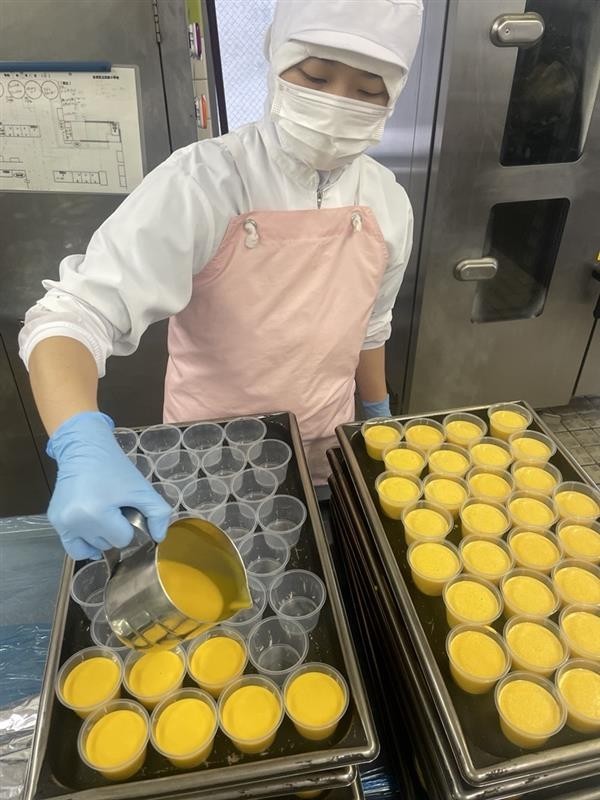 今日はハロウィンの日です。もともとハロウィンは、農作物の収穫が終わると、魔女や悪が現れやすくなると信じられていて、それを追い払うための大事なお祭りでした。また、かぼちゃをくりぬき、ランタン入れた物をジャックオーランタンといい、ハロウィンのシンボルとして知られています。今日は、ハロウィンを意識して、かぼちゃプリンを作りました。調理員さんがひとつひとつ丁寧に作ってくれました。