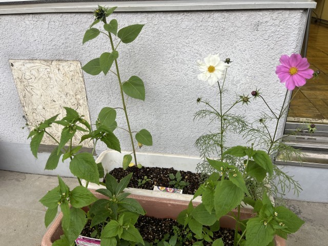 6-1、6-2の生き物係が愛情を込めて水やりしていた花が咲きました!ミニひまわりももうすぐ咲きそうです。植物や花を育てることは感受性を豊かにすることにも繋がります。これからも続けてほしいと思います。