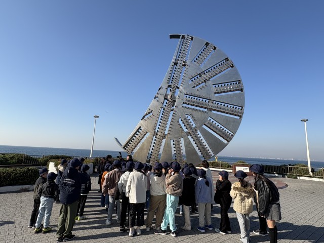 また、海ほたる海底トンネルを掘ったシールドマシンのカッターフェイス(復元したもの)の大きさを体感することができました。