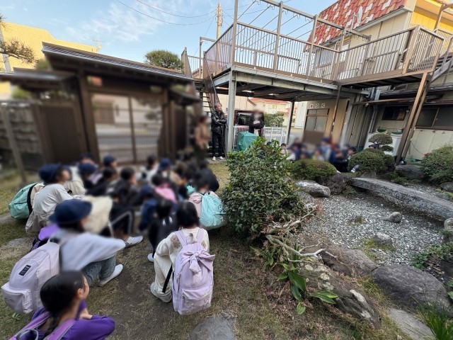 入園式のあと、全員で避難訓練をし、避難経路の確認をしました。
