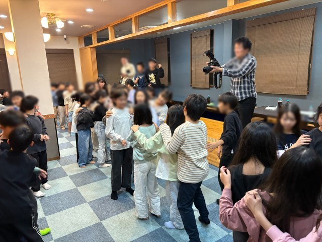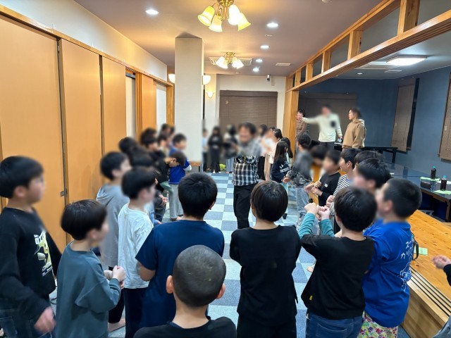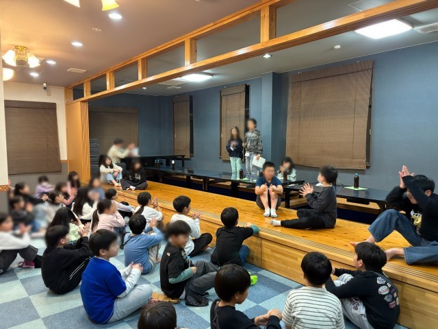 レク係が司会をし、みんなで伝言連想ゲーム、ジャンケン列車、クロスオーバーのダンス、そして歌を歌いました。