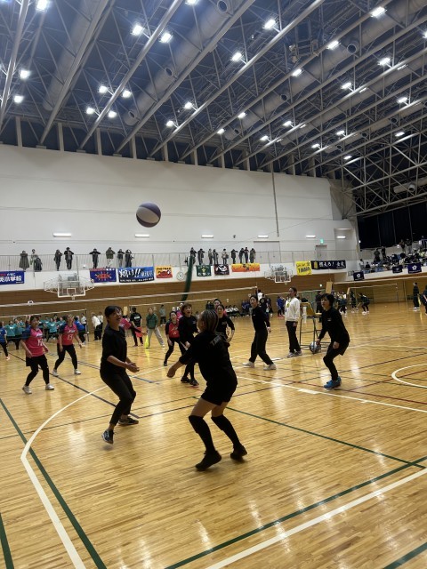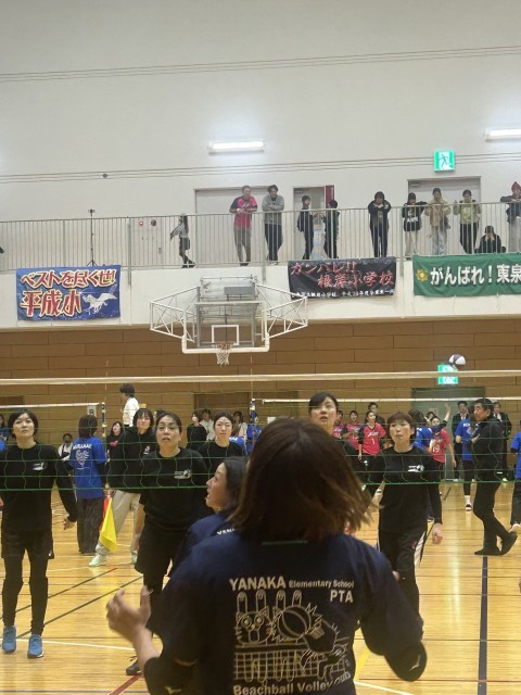 リバーサイド体育館で小P連のビーチボール大会が行われています。午前中にお父さん達。午後はお母さんたちが汗を流しています。