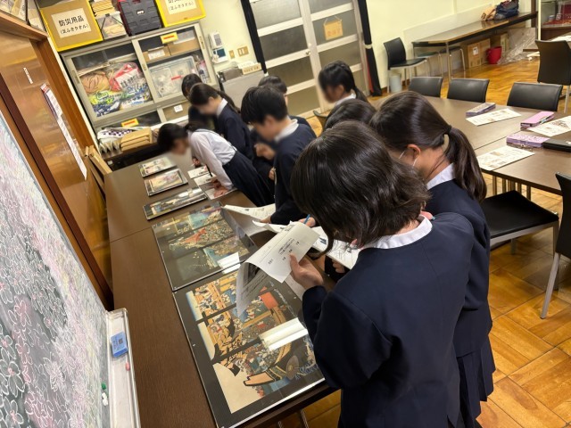 図工で彫刻刀を使ったばかりなので、彫りの細さや刷りに興味をもちながら聞いていました。
