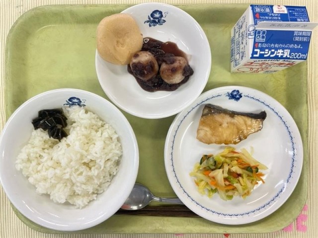 がつ15にちは『小正月こしょうがつ』です。小正月こしょうがつには、もちばなかざ小豆あずきがゆをべる風習ふうしゅうがあります。もちはいねはなあらわし、ほうさくいの意味いみがあります。小豆あずきあかわるいものをはらってくれるとされ小豆あずきがゆをべることで無病むびょう息災そくさいいのります。今日きょう給食きゅうしょくではわりに「白玉しらたま小豆あずき」をつくりました。 また、おしゃれな「もなか」付きつ です。そのまま食べてた  もおいしい「もなか」ですが、しらたま小豆あずき一緒いっしょ食べるた  とどちらの美味しさおい  き立ちます。ぜひべてみてください。