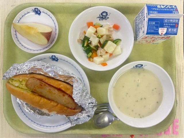 今日きょうのポタージュスープは、じゃがいもとたまねぎをやわらかく加熱かねつし、ミキサーにかけて牛乳ぎゅうにゅうなまクリームを加えてくわ   仕上げましたしあ     。じゃがいもはからだ動かすうご    エネルギーのもとになり、ビタミンC含まれてふく      いるため、元気げんき過ごすす  ちから助けますたす     。たまねぎは流れなが をよくし、からだ調子ちょうしをととのえます。牛乳ぎゅうにゅうにはほね強くつよ するカルシウムが多くおお 成長期せいちょうきのみなさんに大切たいせつ栄養えいようです。