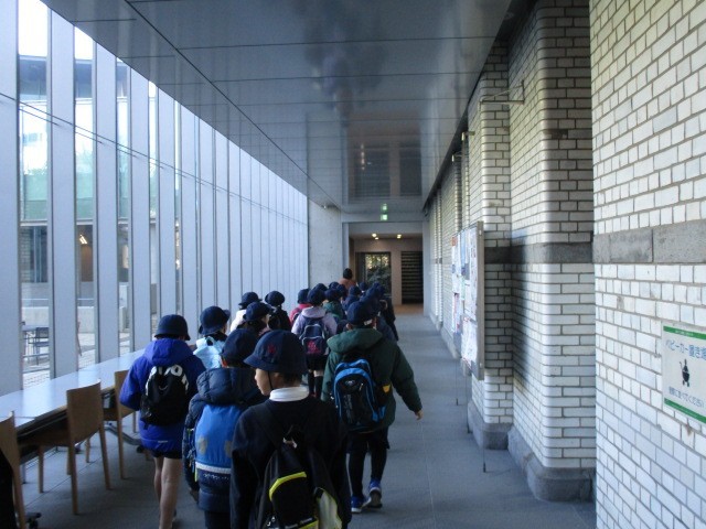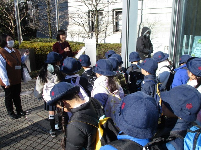 1月22日に上野にある国際子ども図書館へ見学に行きました。電車に乗っての初めての移動でしたが、静かにマナーよく乗ることができました。図書館では、普段は見られない書庫に入り、レバーを回転させて重たい書棚を動かす体験をさせていただきました。全国の子ども向けの本が全て集まっているそうです。