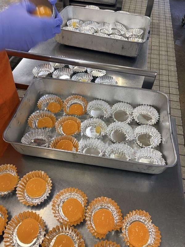 きょうのデザートは「ふしぎな目玉焼き」です。もも缶とカルピス寒天で作った、見た目が目玉焼きそっくりの楽しいデザートです。2月の「野菜残さず食べようキャンペーン」の当たりつきで、残さず食べられた日数+1個ずつ、クラスにぶどうを入れました。今日ものりで和えた野菜が出ています。野菜には、体の調子をととのえるビタミンや食物せんいがたくさんふくまれています。これからも好ききらいせず、しっかり食べて元気な体をつくりましょう。