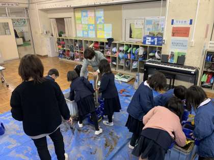 ミニトマトの時に使用していた鉢に新しい土を入れて種を植えました。1粒1粒ていねいに植えていました。芽が出るのが楽しみです。