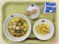 --給食--・和風きのこスパゲッティ・ABCスープ・さつまいも蒸しパン 今日き...