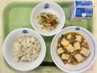 --今日の給食--・牛乳・じゃこむぎごはん・肉豆腐・れんこんとひじきのサラダ ...