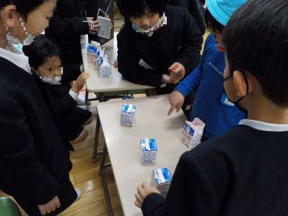 年長さんの面倒を見る1年生の姿に頼もしさを感じ、教員も思わず微笑んでしまう一場面でした。