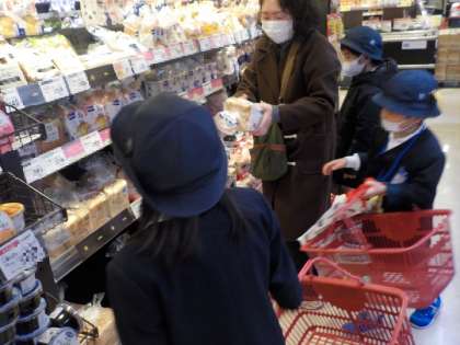 今日(2月28日)は2・3時間目を使って、ライフ浅草店に行き、実際のお店で必要な商品を選び買い物をする学習を行いました。