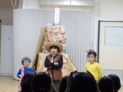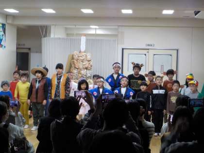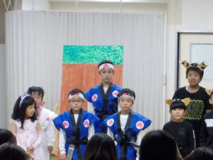 11月1日(水)「かたばみ学級合同学芸会」が、本校のかたばみ学級教室で開催されました。たくさんの保護者や先生方が参観する中、「ザ・ピーチ」という劇を協力して演じることができました。この劇は他校にもリモートで放送されます。一人一人が力を出し切り、責任もって自分の役割を果たすことができました。本当に素晴らしい学芸会になりました。