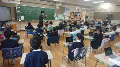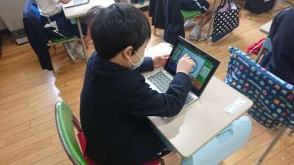 1月下旬から1年生もタブレット端末を使った授業が始まりました。1番最初の授業は、タブレット端末の起動の仕方を学習しました。タブレット端末を開いたときの不具合の治し方も学び、もう一人で起動することができます。