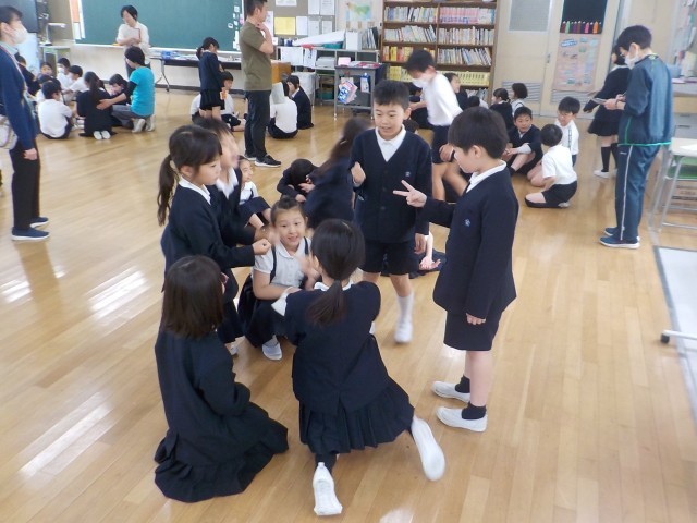 きょうだい学年活動 公開日 2025/07/23 更新日 2025/11/13 できごと 11月11日(火)に、きょうだい学年活動が行われました。1・6年生、2・4年生、3・5年生でグループを作り、上学年が考えた遊びをしました。ハンカチ落とし、ばくだんゲーム、ペットボトルボーリングなどをしながら、どのグループも楽しそうに遊ぶ姿が見られました。