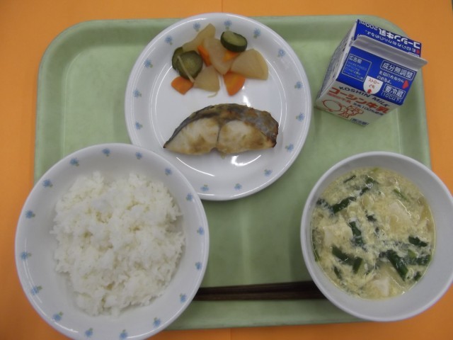 ご飯 鰆の西京焼き 即席漬け にらたま汁 牛乳