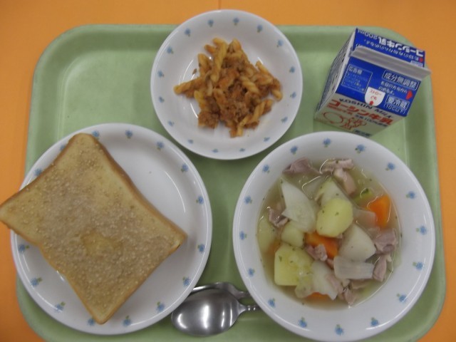 セサミトースト ポトフ きのこ入りボロネーゼ 牛乳