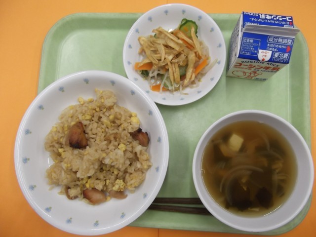 焼き鳥ご飯 揚げごぼうサラダ すまし汁 牛乳