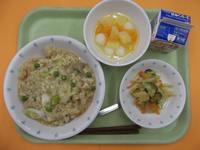 卵のあんかけチャーハン 即席漬け フルーツ白玉 牛乳