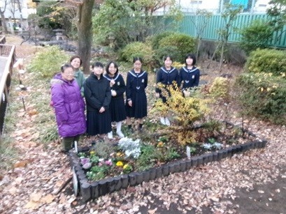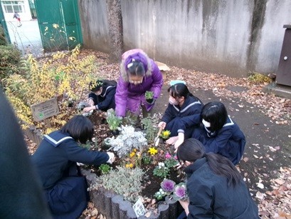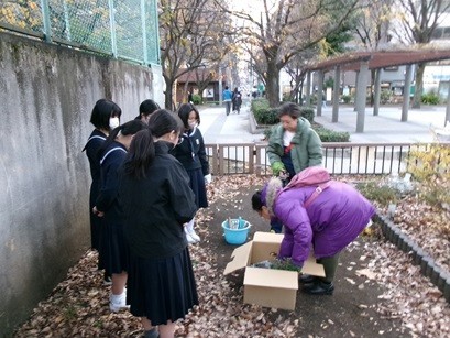 JRCボランティア部・文化交流部の生徒と地域の方で、御徒町公園の花壇整備を行いました。アリッサム、パンジー、ガザニア、パルドサム(ノースポール)、忘れな草、カレンジュラ、ストックなどを新たに植えました。冬から春にかけて花が咲きますので楽しみにしてください。(この花壇は「東京都都市緑化基金」の助成をいただいています。)