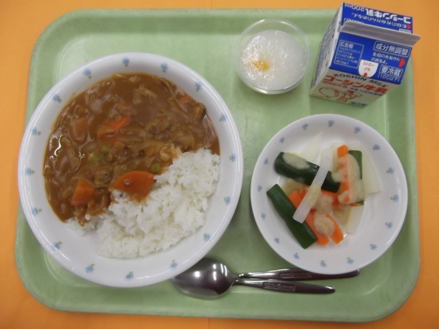 ハヤシライス スティックサラダ カルピスゼリー 牛乳