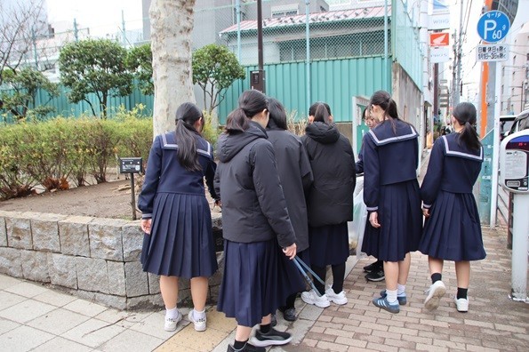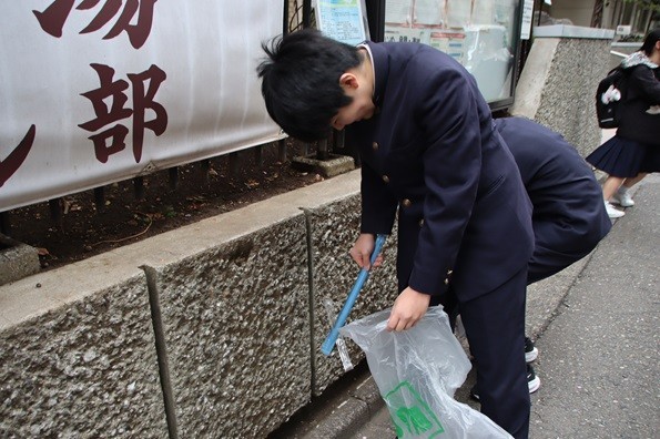 学年末考査最終日に、「おかたいキラキラ清掃隊(おかキラ)」を実施しました。今年度4回目となり、本年度最後の活動となります。今回は生徒会が主体となり、準備から片付けまで自分たちの手で行いました。御徒町公園周辺をトングを使って清掃し、地域の環境美化に取り組みました。ゴミの入ったスーパーの袋のような大きなものから、たばこの吸い殻といった小さなものまで、さまざまなゴミが落ちていました。活動当初は小さなゴミを見過ごしてしまう姿も見られましたが、次第に目が慣れ、まるでゴミの場所が分かるかのように積極的に見つけて拾う姿が印象的でした。地域の一員として主体的に行動する生徒たちの姿に、大きな成長を感じる活動となりました。来年度も継続し、さらに広がりのある取組になることを期待しています。