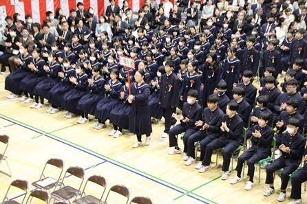 4月7日(火)に入学式を行いました。入学式では、台東区の歌を歌う新入生の大きな声、担任の一人一人の呼名に対するハッキリとした返事が、緊張感とともに会場に響き渡りました。114名の新しい新芽が御徒町台東中学校で過ごす3年間の生活の中、どのような花を咲かせ、葉を芽吹かせるのか楽しみな気持ちになりました。新一年生として、上級生と共に新しい御徒町台東中学校を創っていってほしいと思います。