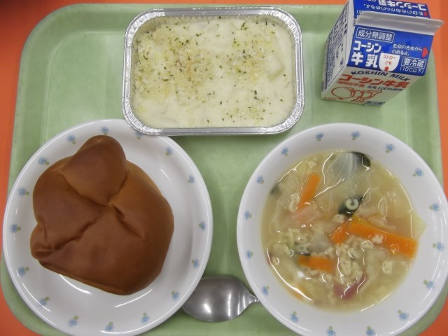 黒砂糖パン ポテトグラタン ABCスープ 牛乳