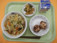 あんかけうどん じゃがまるくん 大根と胡瓜の南蛮漬け 牛乳