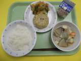 ミルクパン ビーンズコロッケ ボイルキャベツ ABCスープ 牛乳