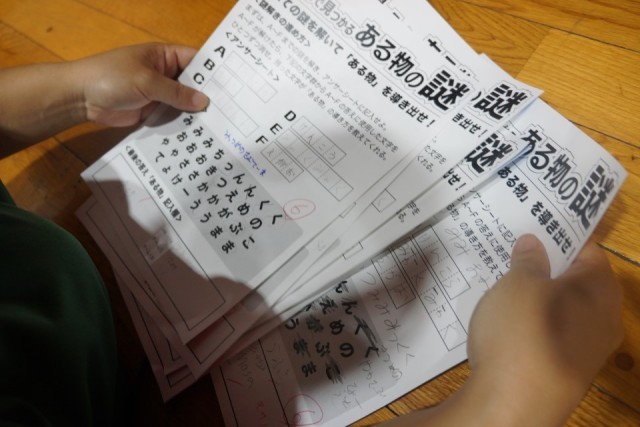 生徒はグループに分かれ、AからFまでの謎を書き、