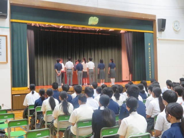 生徒会新役員と後期各種委員の任命式を行いました。