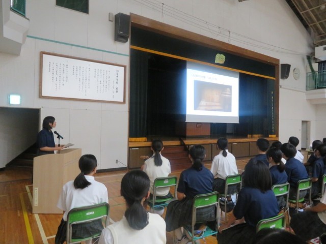 平和記念式典に参加した生徒の発表を行いました。