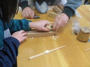 11月25日(火)に江戸指物協同組合の職人の方々をお招きして、箸作り体験の特別授業を行いました。