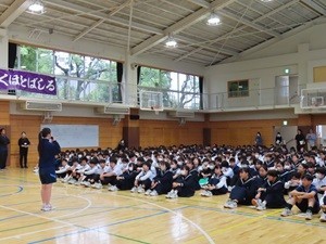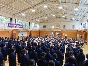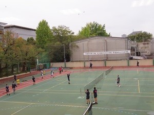 本日は上中音楽祭にむけて、初めて全校体制での練習をしました。実行委員長の3年生から、お話をしてもらい、その後合唱隊形に移動する練習、そして初めて全校での合唱練習をしてみました。これからさらに磨きがかかっていくことでしょう。みなさん、楽しみにしています。放課後は校庭でテニス部が練習していました。5時過ぎには暗くなってしまいます。照明はありますが、やはり自然光が良いですね。