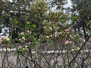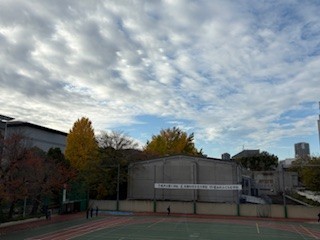 登校途中の路にきれいな花が咲いていました。調べてみると、「ぼけ」?のようです。可愛らしい小さな花です。生徒の皆さん、忙しい中ですが、是非路傍に咲く花に心を向けてみるのもいいものですよ。紅葉のトンネルの中で、朝練習を待つ生徒が手を振ってくれました。頑張ってください、また、試合観にいきます!登校時にはきれいな雲がお出迎え!今日も一日、頑張りましょう!