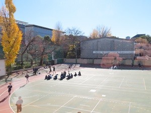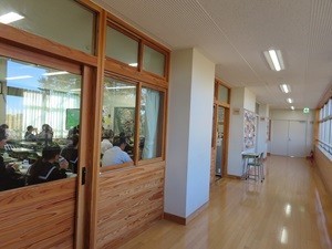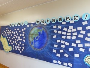 3階の廊下を歩いていると、掲示板に素敵なものが貼ってありました。自分たちの地球を大切にする取組が書かれていました。また、本校の廊下はとても明るいです。蛍光灯のライトが廊下に反射しています。授業も真剣そのもの。校庭では、持久走の練習です。頑張ってください!