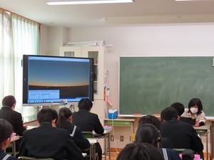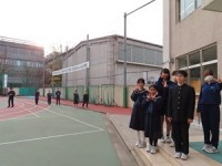 朝の挨拶を終え、生徒と玄関に向かうと「太陽の照りつける場所」がずいぶん少なく感じました。朝のうちは、太陽の角度が低いので、向かいの建物や銀杏の木の影が伸びています。どうりで寒く感じると思いました。そのようなとき、3年生の理科で、太陽の入射角の授業をおこなっていました。3時間目には、そんなことも関係なく、暖かい日差しの中、体育の授業のアップで生徒が走っていました。