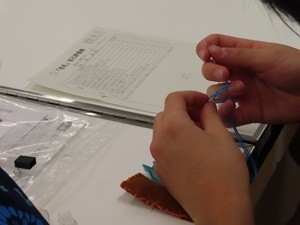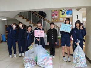 本日も空き缶・紙パック回収です。生徒会役員のみなさん、いつもありがとう。継続は素晴らしい!今後もよろしくお願いします。3年生の家庭科は、裁縫です。私も、出来るか試してみたのですが、針に糸が通せませんでした。生徒が針通しアイテムを貸してくれました。便利なものがあるものです。校庭では、3年生がアップでランニングしています。今日も抜けるような青空です。
