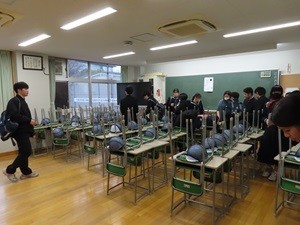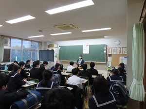 本日はとても寒く感じました。廊下も窓を少し開けているので、寒いです。そのような中、本日はクリスマスイブということで、チキンが給食に出ました。とてもおいしかったです。6時間目の授業を見ようと3年の教室に行くと、学活?をやっていました。そうこうしているうちに、隣のクラスは掃除を始めています。?!と思っていると、今日は水曜日で5時間授業でした。なんか、忙しくて曜日の感覚がずれていました。帰り際に3年生が「面接ありがとうございました」と言ってくれました。毎日数名の生徒と面接練習をしています。将来の夢は、人のお役に立つこと、と言ってくれる生徒を頼もしく思います。また、被災地に尽力したい、と崇高な志を掲げる生徒もいます。応援してます。頑張ってください!