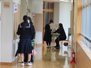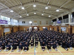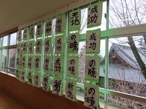 本日は終業式です。1年間の印象に残っていることを3点にまとめて生徒に伝えました。1点目には「数多くのボランティア活動をしたこと」、2点目には11月15日におこなった「上中防災の日」を通して自分や他人、大事な人の命を守ることの大切さを伝えました。そして3点目には、学習面や習い事、部活動や地域のお手伝い等、本当によく頑張ったことを褒めました。廊下では担任の先生より通知表が手渡されています。また、4階には1年生の書写の作品が展示されていました。2025年も終わります。保護者の皆様、近隣・地域のみなさま。1年間本校の教育活動にご理解・ご協力いただき、ありがとうございました。教職員一同来年も全力で頑張って参ります。どうぞよろしくお願いいたします。
